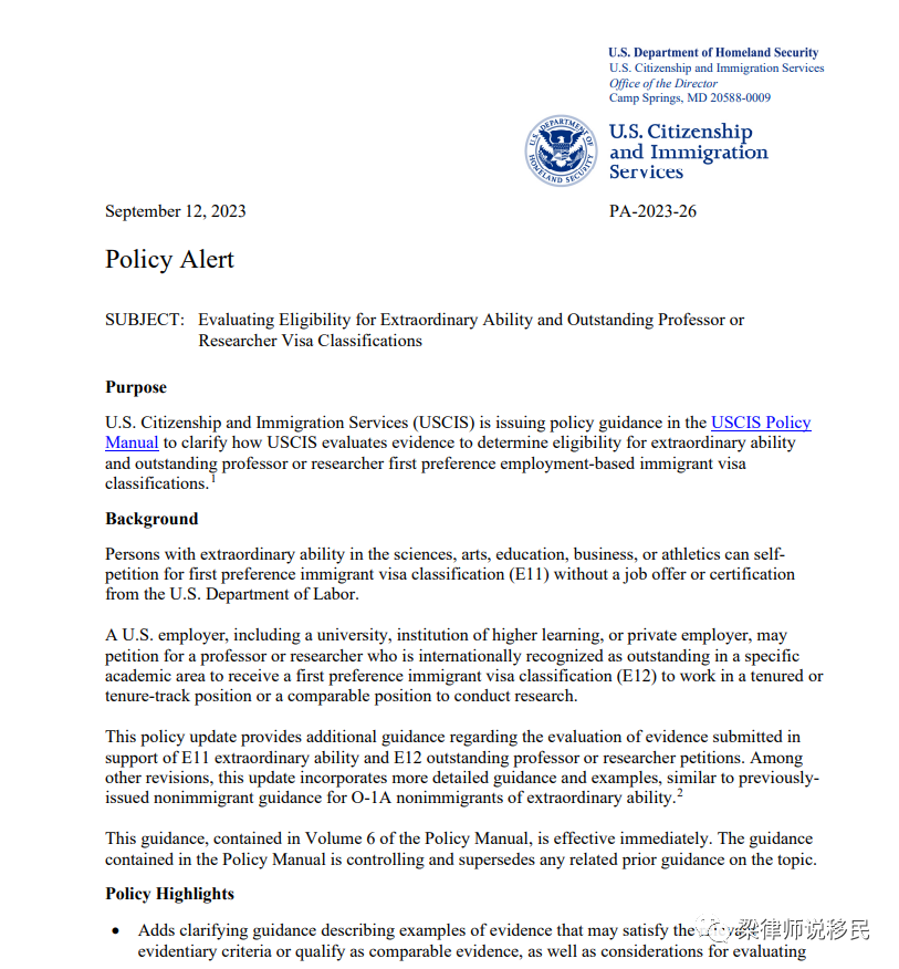 9月12日美国移民局公布了新的杰出人才移民EB1A评定标准,可以说非常重要,一直打算写篇文章,不过上周正好阳了,浑身无力状态低迷,今天终于恢复了。